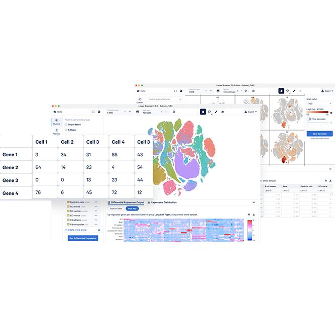 We provide 10X Genomics's basic support for Loupe Browser analysis of Cell Ranger output, and a variety of cluster-based comparative analysis and Cell type DE analysis through Excel based Single Cell Expression Analysis (ExSCEA) and WinSeurat (Windows based Seurat) developed and produced by Ebiogen.