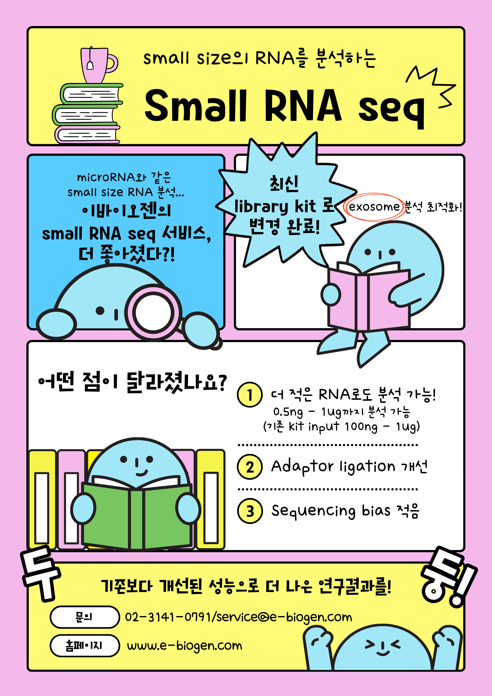 Fully upgraded with the latest kit! Small RNA-seq performance dramatically enhanced! ebiogen 2025-11-17 16:54:57 view : 59 목록 이전글Last Chance to Join the 2025 Service Promotion!2025.12.03 다음글Expanding FFPE Sample Applications with Total RNA-Seq!2025.11.12
