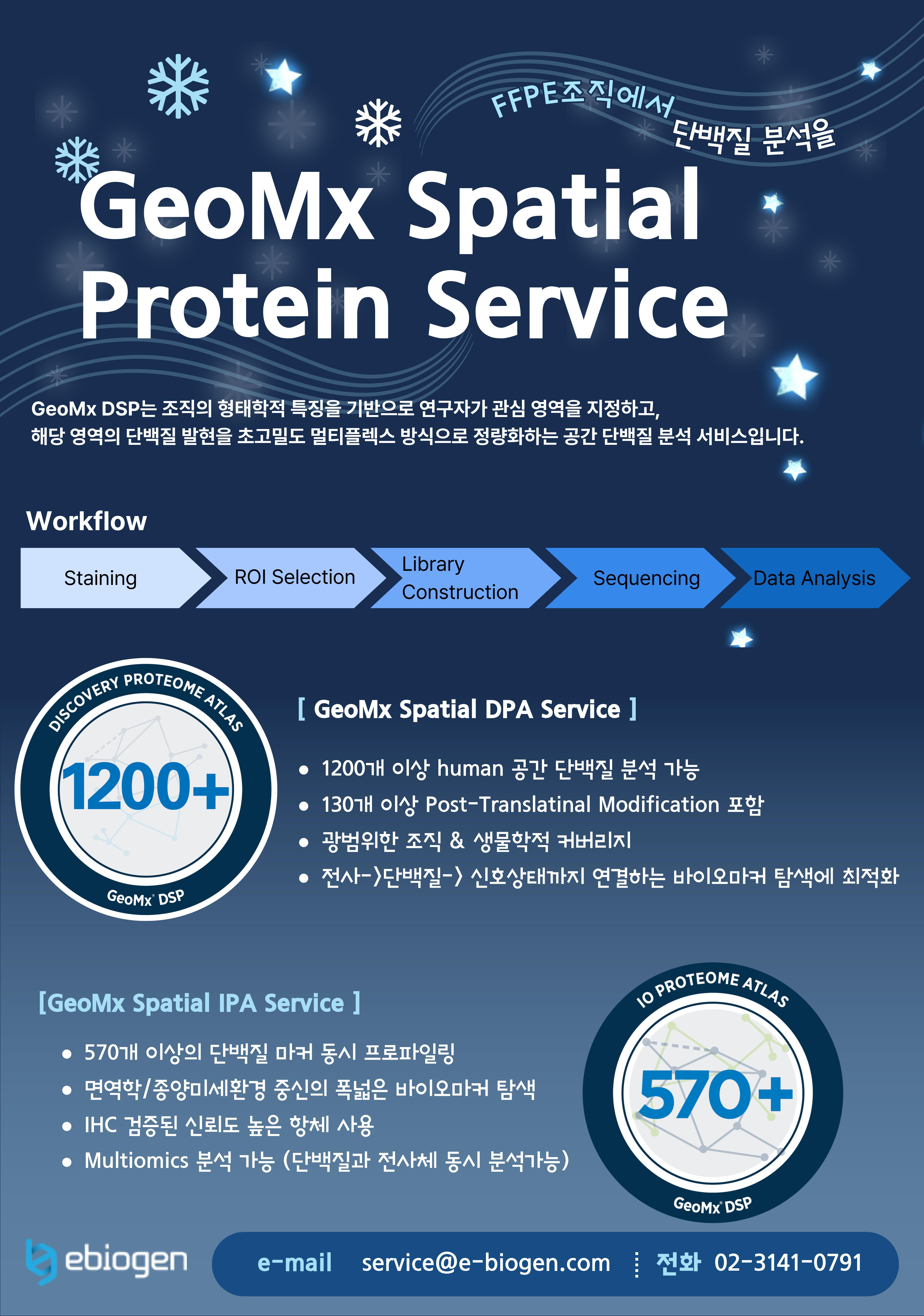 GeoMx Spatial Protein Service – High-Plex Protein Profiling in FFPE Tissues ebiogen 2025-12-16 10:25:01 view : 9 목록 다음글Last Chance to Join the 2025 Service Promotion!2025.12.03